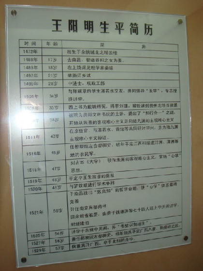 王阳明去世前,门人周积侍疾,问遗言,先生曰:“此心光明,亦复何言?”,故居大厅里就可以见到“吾心光明”四个字——