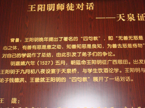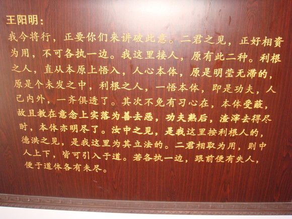 天泉证道,这段对话很有名,也很值得思考,可惜没拍全(详见后面附录)——