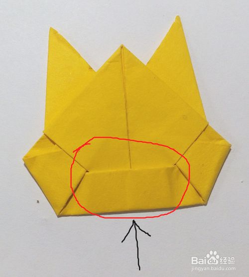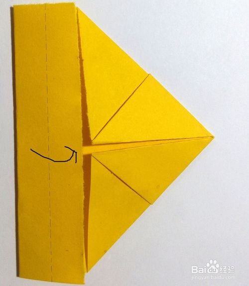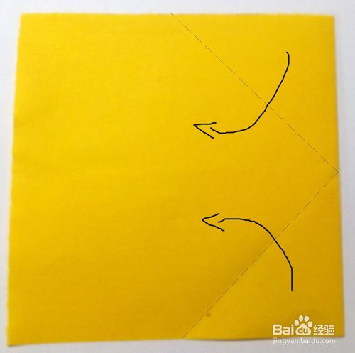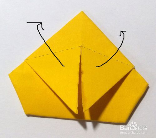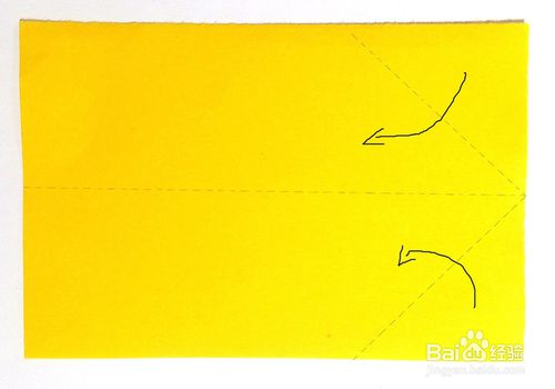 翻过来,沿中心线按虚线位置剪开,剪至大约1/3处,如图,再按黑色箭头所示折上去。