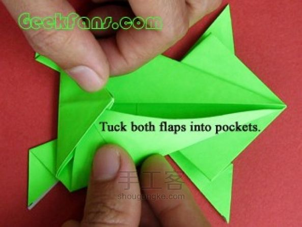 把左右两个角分别插入相邻的缝隙里。