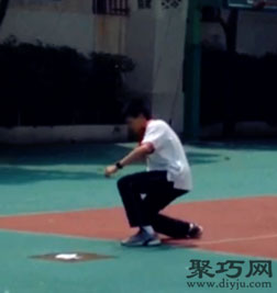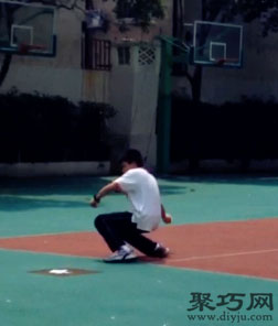越蹲越深的同时,右臂旋转