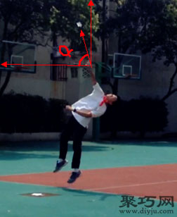 投掷中,α以八十度为宜,不可以小于六十度,否则能量损失过大,减弱抛高性能